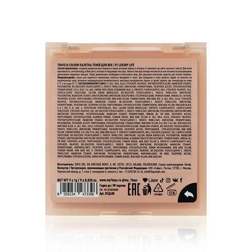 Палетка теней для век 7 days b.colour 02 , Midsummer Fairytale , 9г