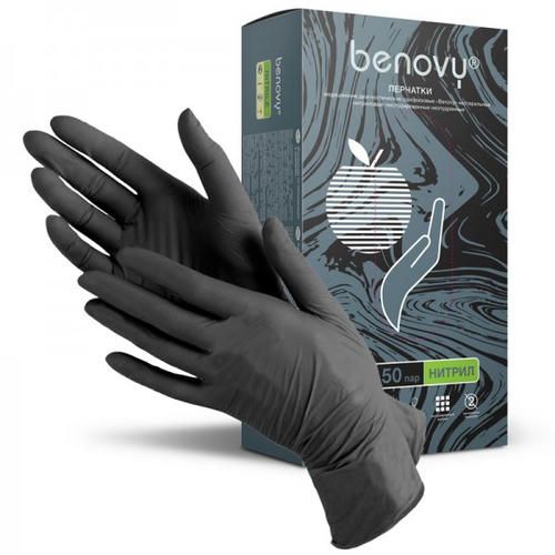Перчатки нитриловые Benovy, черные размер: S, 50 пар