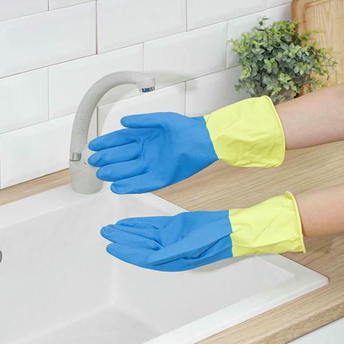 Перчатки хозяйственные резиновые Доляна, размер S, плотные, 80 гр, цвет МИКС