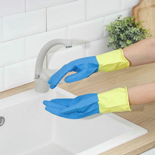 Перчатки хозяйственные резиновые Доляна, размер L, плотные, 80 гр, цвет МИКС