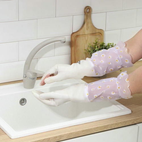 Перчатки с щёточками позволят навести порядок дома без использования дополнительных хозяйственных принадлежностей. Перчатки из ПВХ отличаются плотной структурой и надёжно защитят руки от воздействия химических составов и прочих вредных веществ. Внутренний подклад сохраняет тепло и помогает защитить руки в холодной воде. Длинные манжеты позволяют избежать попадания воды внутрь перчаток.