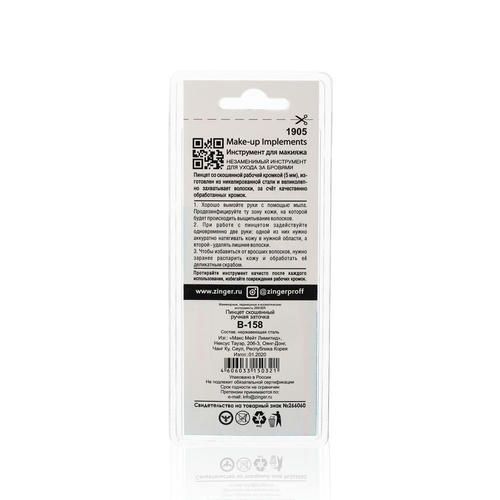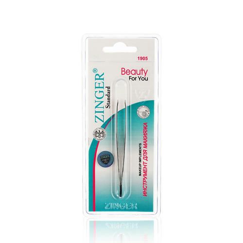 Пинцет для бровей Zinger 86119 скошенный, плоский, ручная заточка