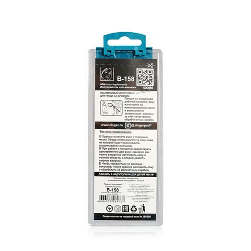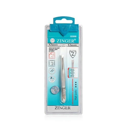 Пинцет для бровей Zinger B-165 прямой, плоский, ручная заточка