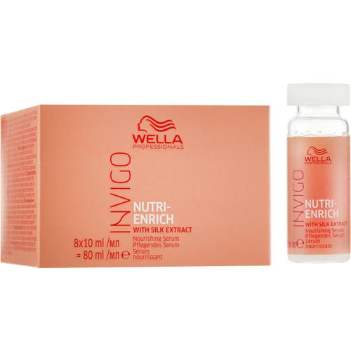 Атласная гладкость и роскошный блеск волос представительницы прекрасного пола притягивают восхищенные взгляды и становятся настоящим украшением своей обладательницы. Инновационная питательная сыворотка Wella Professionals Invigo Nutri-Enrich Nourishing Serum — это отличный выбор уходового средства для современной девушки, которая желает подарить локонам шелковистость и бархатистость. Его активная формула обогащена олеиновой кислотой, пантенолом, витамином Е и экстрактом ягод годжи.