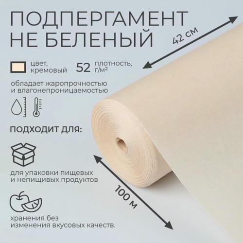 Подпергамент изготовлен из целлюлозы жирного помола. Обладает жаропрочностью и влагонепроницаемостью.