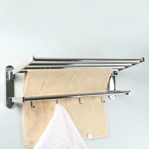 Полка откидная с держателем полотенец, 4 крючка, 57x23x18 см