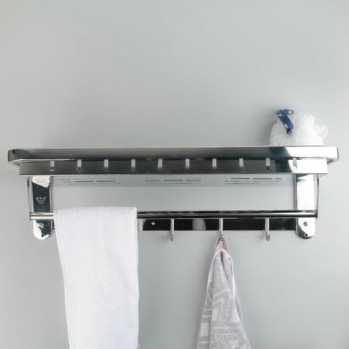 Полка откидная с держателем полотенец, 5 крючков, 59x12x15 см, алюминий