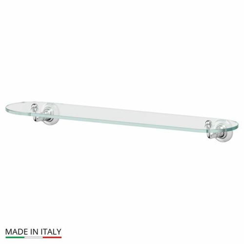 Такая полка — это изящный предмет, который украсит интерьер ванной комнаты. Его корпус выполнен из латуни — многокомпонентного медного сплава с добавлением цинка. Горизонтальное полотно аксессуара выполнено из прозрачного стекла толщиной 8 мм. Полированная кромка уменьшает вероятность образования трещин, предохраняет от порезов и обеспечивает прозрачность торца.