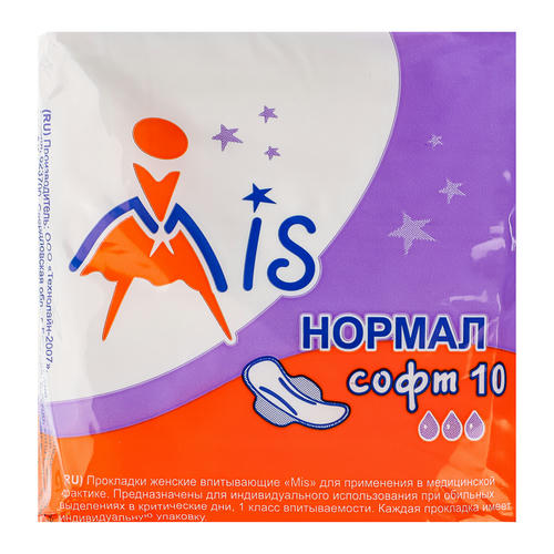 Прокладки гигиенические Mis нормал софт, 3 капли, п/э, 10 шт