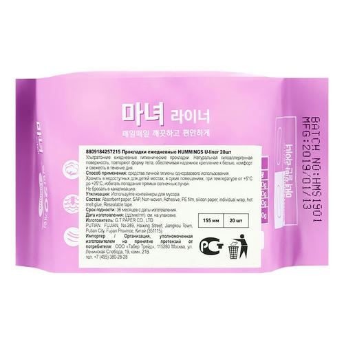 Прокладки ежедневные `HUMMINGS` U-LINER 20 шт