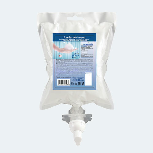 Мыло жидкое АЛЬБАСОФТ-пена 800 мл с антибакт. эффектом в картридже бесцветное К4
