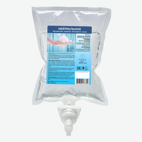Расходники Кеман: Мыло жидкое пенящееся 800 мл нейтральное в картридже бесцветное без отдушки К4