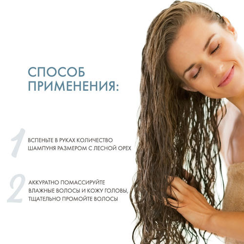 В зависимости от длины волос используйте необходимое количество шампуня. Распределите по влажным волосам и аккуратно помассируйте. Хорошо промыть. Повторите при необходимости.