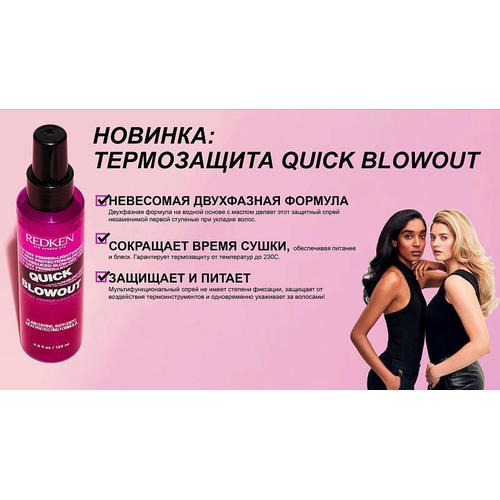 При горячей укладке необходимо использовать средства защиты для любого типа волос, чтобы избежать множества печальных последствий. Легкий спрей Quick Blowout подходит для всех типов и текстур волос. Двухфазная формула на водной основе с маслом делает этот защитный спрей незаменимой первой ступенью при укладке волос. Аромат с нотами цитрусовых, ванили и сандалового дерева придаст приятный финальный штрих.