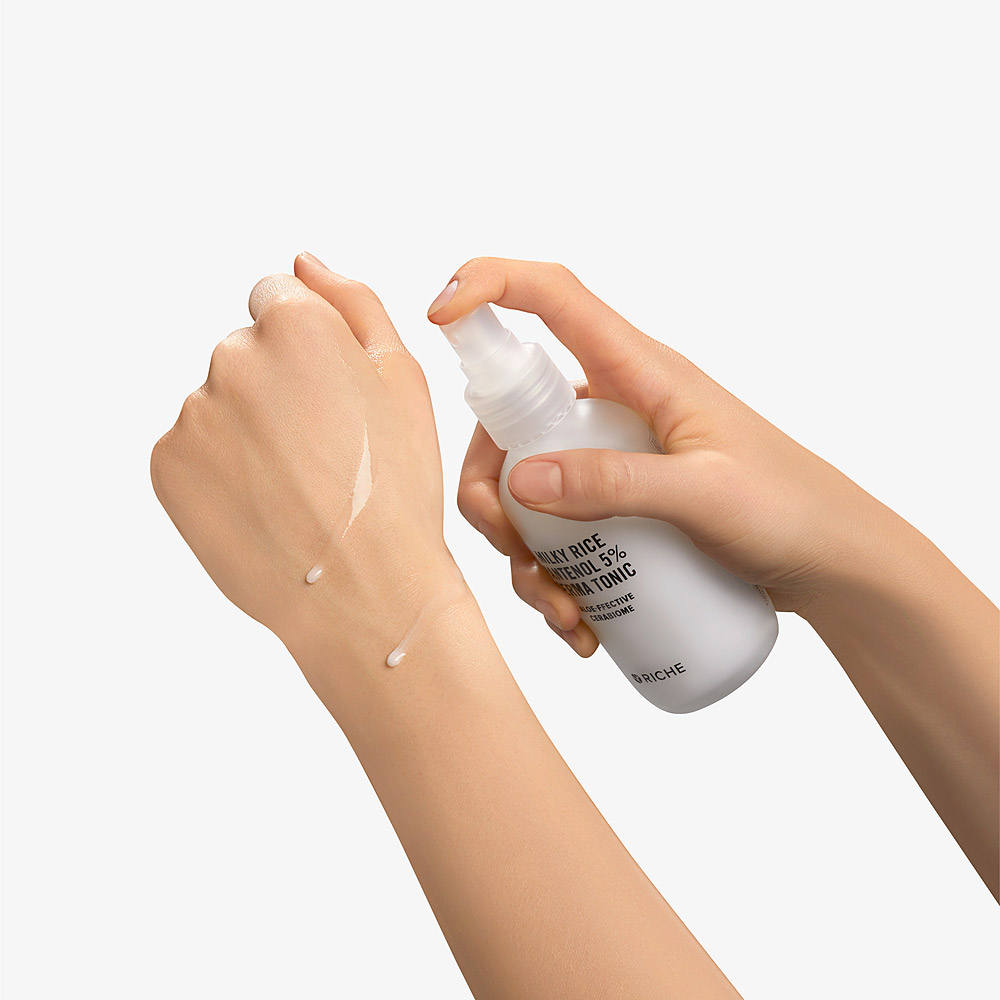 Небольшое количество тоника распредели по очищенной коже лица, шеи и зоны декольте. Не дожидаясь полного впитывания, переходи к следующему этапу ухода.