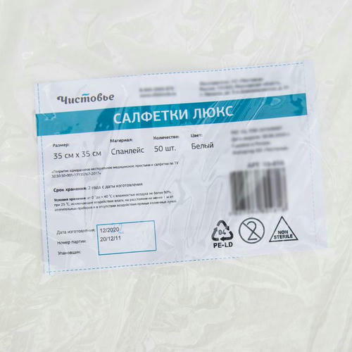 Салфетка одноразовая Чистовье «Люкс», 35×35 см, спанлейс, 50 шт/уп, цвет белый