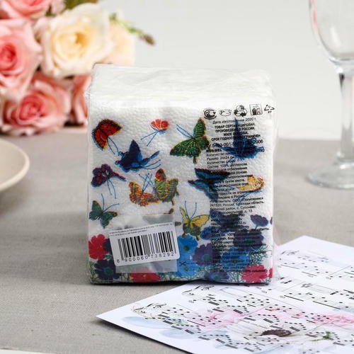 Качественные бумажные салфетки изготовлены из качественной целлюлозы. На салфетках нанесен яркий рисунок.