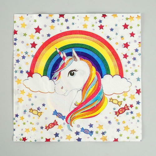 Салфетки бумажные «Единорог и радуга», 33х33 см, набор 20 шт
