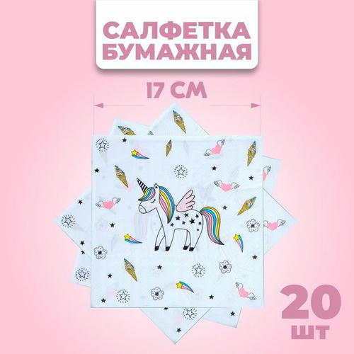 Салфетки бумажные «Единорог», 33х33 см, набор 20 шт., цвет белый
