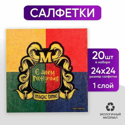 Салфетки бумажные однослойные «С днём рождения», 24 x 24 см, в наборе 20 шт