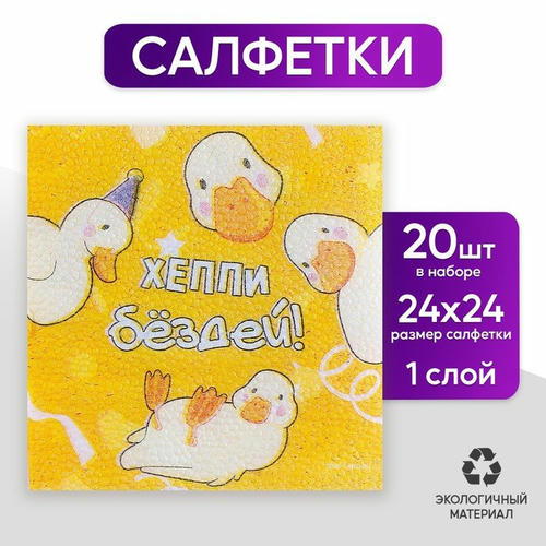 Салфетки бумажные однослойные «Футбол», 24 x 24 см, в наборе 20 шт