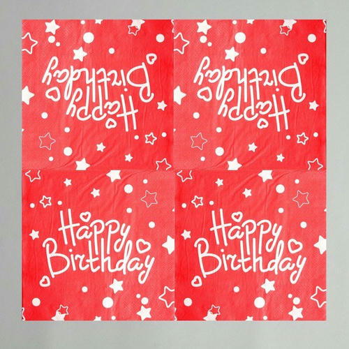 Салфетки бумажные «С днём рождения», набор 20 шт., 33 x 33 см., цвет красный