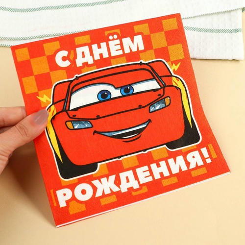 Салфетки бумажные «С днём рождения» Тачки, 33х33 см, 20 шт., 3-х слойные