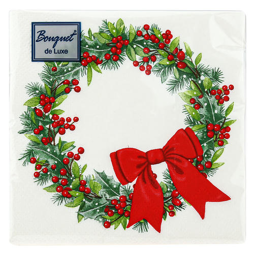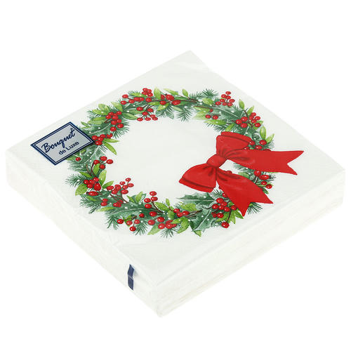 Салфетки бумажные Bouquet de Luxe 24х24 3 слоя 25л “Венок с бантиком”