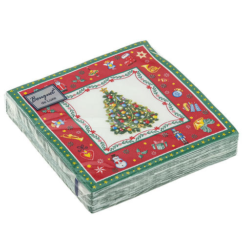 Салфетки бумажные Bouquet de Luxe 24х24 3 слоя 25л "Новогодняя композиция. Красная"