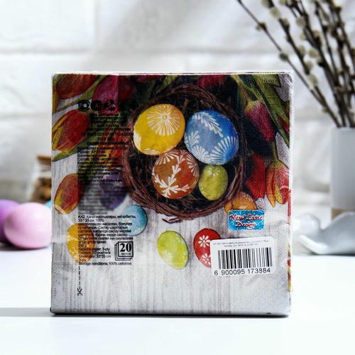 Качественные трехслойные бумажные салфетки изготовлены из качественной целлюлозы. На салфетках нанесен яркий рисунок.