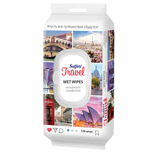 Салфетки влажные Salfeti Travel универсальный 120 шт с пластиковым клапаном