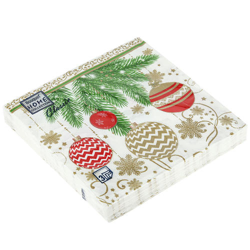 Салфетки бумажные “Bouquet Home Collection Classic” 33х33см, 3-х слойные, 20 штук в упаковке, 100% целлюлоза, “Елочные украшения-2”