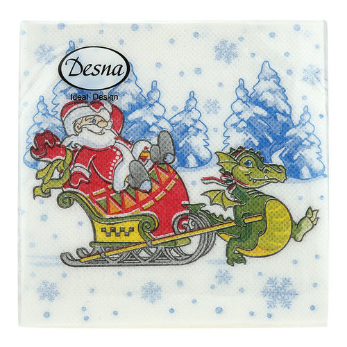 Салфетки бумажные “Desna Design” 24х24см, 1 слойные, 40 штук в упаковке, 100% целлюлоза, “Новый год к нам мчится” “Символ года 2023 Дракон”