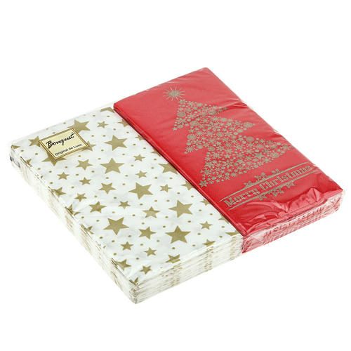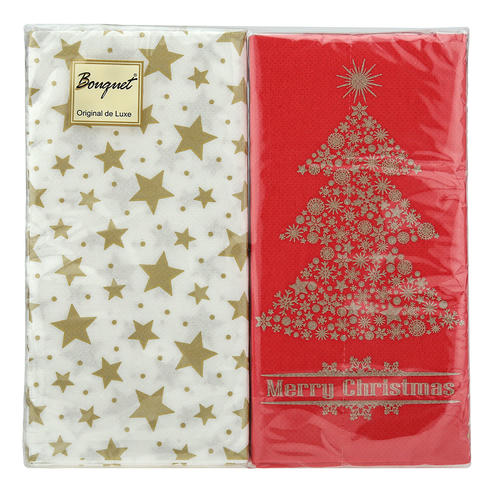Салфетки бумажные “Bouquet Original de Luxe” 33х33см, 2-х слойные, 20 штук в упаковке (2 цвета по 10шт), 100% целлюлоза, “Золотая ель MIX с красным”