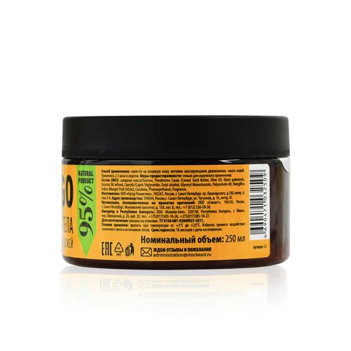 Sucrose, Theobroma Cacao (Cocoa) Seed Butter, Оlive Oil, Elaeis guineensis, Coconut Oil refined, Caprylic/Capric Triglyceride, Cetyl alcohol, Glyceryl Monostearate, Polysorbate-80, Mangifera Indica (Mango) Fruit Extract, Сarotene, Phenoxyethanol, Fragrance.