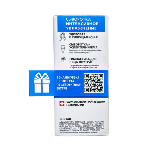 Высококонцентрированная гиалуроновая кислота; увеличивает увлажнённость кожи лица на 20% за 2 часа; удерживает до 90% влаги.
