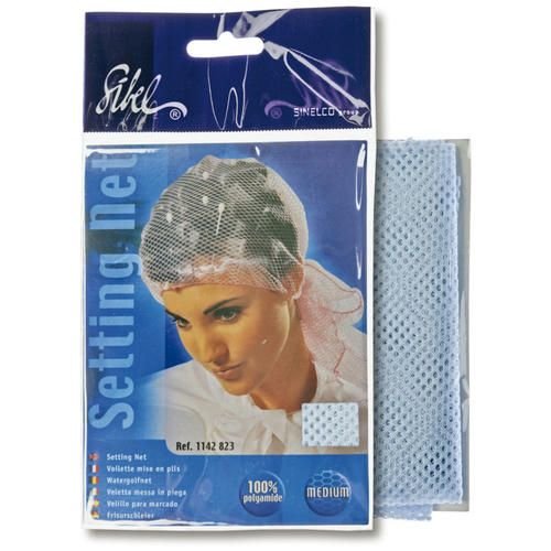Сеточка RESILLE фиксирующая для бигуди голубая, со средними ячейками, на завязках