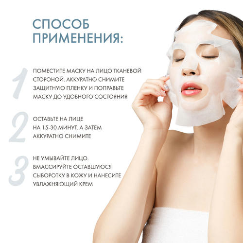 Материал маски мягкий и изготовлен из био-целлюлозной древесной массы. Это 100% биоразлагаемый материал. Сыворотка представляет собой легкую жидкость.