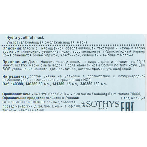 - Утром нанесите маску тонким слоем на очищенную кожу лица и шеи, оставьте на 10 – 15 минут, затем смойте теплой водой. Нанесите на кожу крем Sothys для регулярного применения.