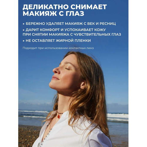 Его преимущества: освежающая текстура дарит комфорт и успокаивает кожу при снятии макияжа с чувствительных глаз.