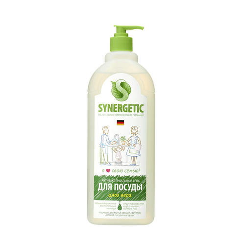 Безопасное средство с ароматом алоэ вера для мытья посуды, детской и взрослой, фруктов и овощей, а также игрушек, которые дети так любят тянуть в рот. Полностью смывается и удаляет органические загрязнения. Устраняет запахи и жир при любой температуре воды. Средство SYNERGETIC на 100% биоразлагается в воде и не вредит микрофлоре септических установок.