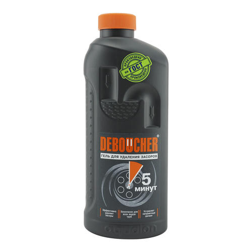 Гель для чистки труб DEBOUCHER, 1л – активное гелевое средство для прочистки и профилактики засоров в канализационных трубах, сифонах, в раковинах и унитазах. Глубоко проникает в трубу даже при наличии воды в раковине. Быстро устраняет сильные засоры, не повреждает трубы, включая пластиковые, устраняет неприятные запахи. Эффективно удаляет пищевые остатки, растительные и животные жиры, волосы, бумагу и органические вещества.