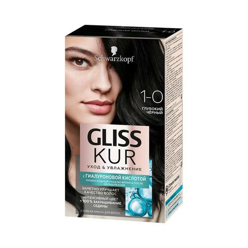 Стойкая краска для волос Gliss Kur Уход & увлажнение с гиалуроновой кислотой 3-0 Черно-каштановый