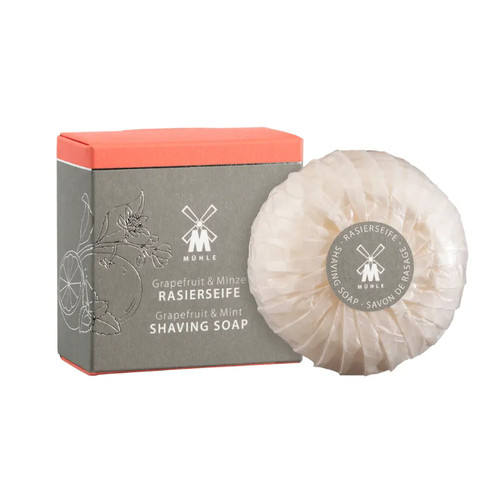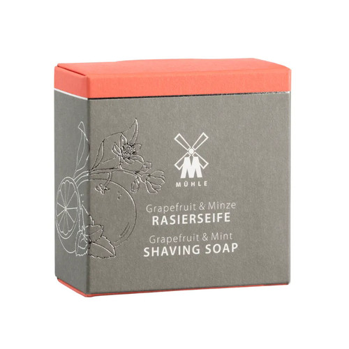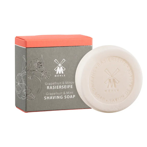 Твердое мыло для бритья MUEHLE с бодрящими и освежающими ароматами грейпфрута и мяты.
