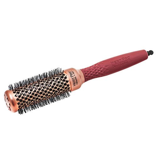 Сверхтермостойкий брашинг Heat Pro 32мм с медно-керамическим покрытием. Медно-керамическое покрытие Copper Ceramic Technology увеличивает скорость нагрева поверхности брашинга в 2 раза. Крупные вентиляционные отверстия уникальной формы в корпусе ствола и крышки брашинга обеспечивают улучщенную циркуляцию горячего воздуха для более очевидного и устойчивого результата укладки.