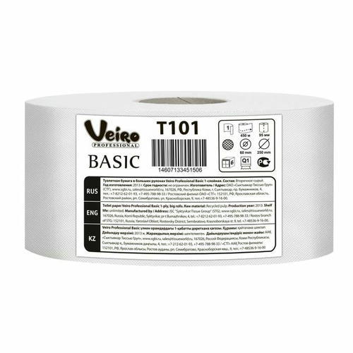 Туалетная бумага для диспенсеров Veiro Professional Basic T101 в больших рулонах, 1 слой, 450 метров (1000 листов)