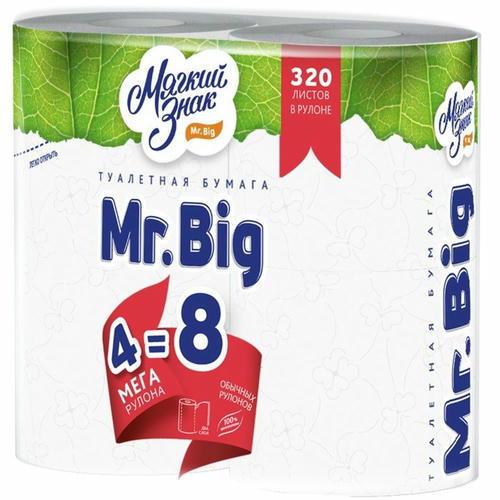 Туалетная бумага «Мягкий знак» Mr.Big, 2 слоя, 4 рулона, белая