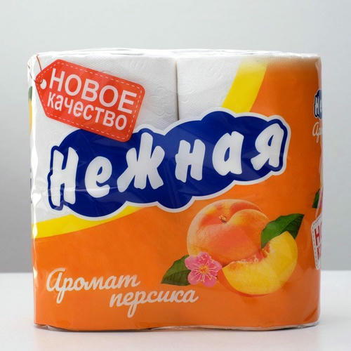 Туалетная бумага «Нежная» со втулкой, аромат персика, 2 слоя, 4 рулона