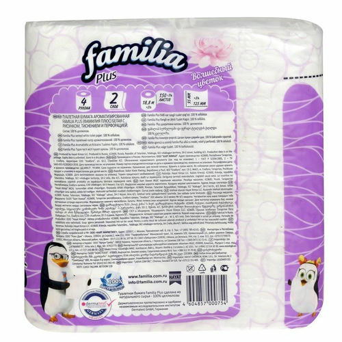 Туалетная бумага FAMILIA, 2 слоя, 4 рулона