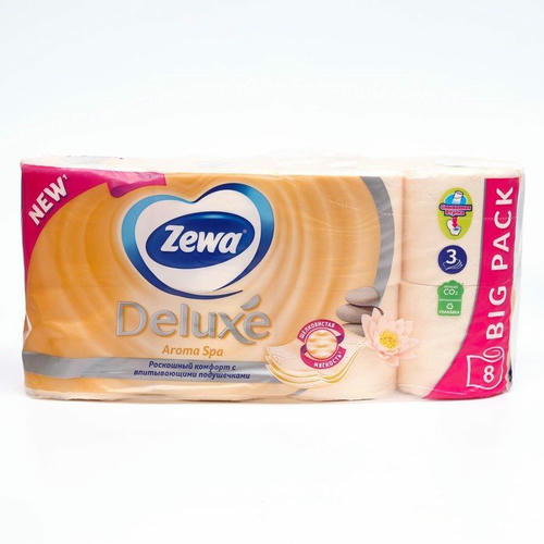 Туалетная бумага Zewa Deluxe АромаСпа – это отличное сочетание мягкости и прочности. Она одобрена дерматологами и прекрасно подойдет всем членам вашей семьи – и тем, кому нужна мягкая бумага, и тем, кому важна прочность. Легко смывается. 3 слоя незабываемой нежности.